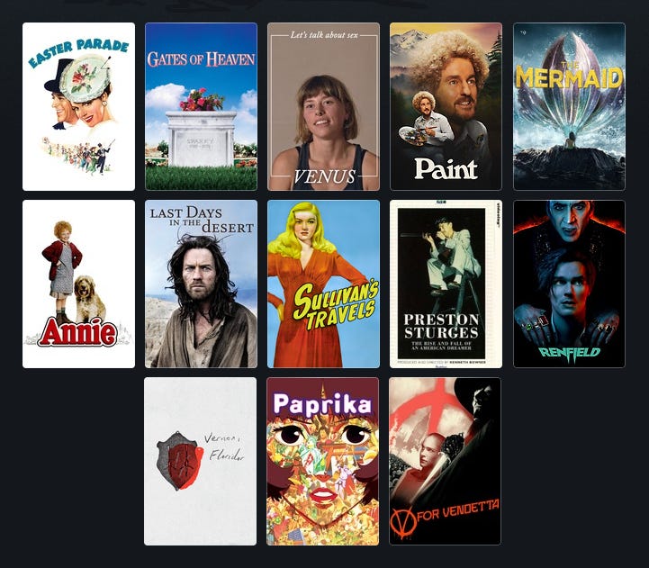 A fun little month of film. I should say that I watched more quality short films than usual, from Cops (and a bunch more Buster Keaton) to Werner Herzog Eats His Shoe to A Date in 2025 to more more more. But they don't get counted! No matter how many there are!