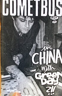 Cometbus was friends with the guys in Green Day well before they were famous and they invited him to join him for several stops in Asia on a world tour. He went because he wanted to visit China (bad luck: the China shows were cancelled and Hong Kong, at least in 2011, still felt different).