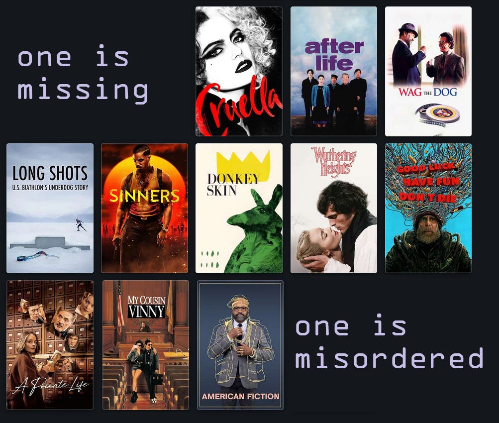Sinners is now added to my seen-in-theaters-more-than-once list. And what did Lady Steed think? We discussed the four BIG prestige pictures we’ve watched recently and she ranks them Ann Lee, Hamnet, Sinners, One Battle, but with Ann Lee waaaay out in front, although all four, she insists, are great. Just Ann Lee—untouchable.