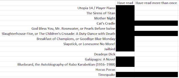 Honestly, it feels like something that should have been published posthumously. It has a lot of great Vonnegut spark and plenty of (half-developed) ideas, but it never congeals into a novel and it ends in such a way that makes me feel like he just lost interest in it.