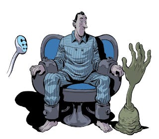 In short, after living for years with radioactive Fiestaware, mild mannered Paul develops amazing dishwashing powers, which he then decides he should use to fight crime.